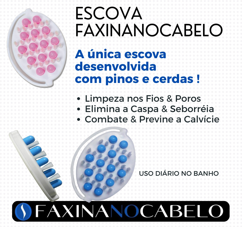 A Escova Faxinanocabelo é composta com pinos arredondados que proporciona um espremer constante, forçando a saída da gordura de dentro dos poros capilares e posteriormente as cerdas fazem uma varredura da gordura, deixando tanto os cabelos como o couro cabeludo limpos, estando livre de tais resíduos como oleosidade, seborreia, caspa e evitando também a queda dos cabelos, fazendo com que eles cresçam livres e saudáveis.